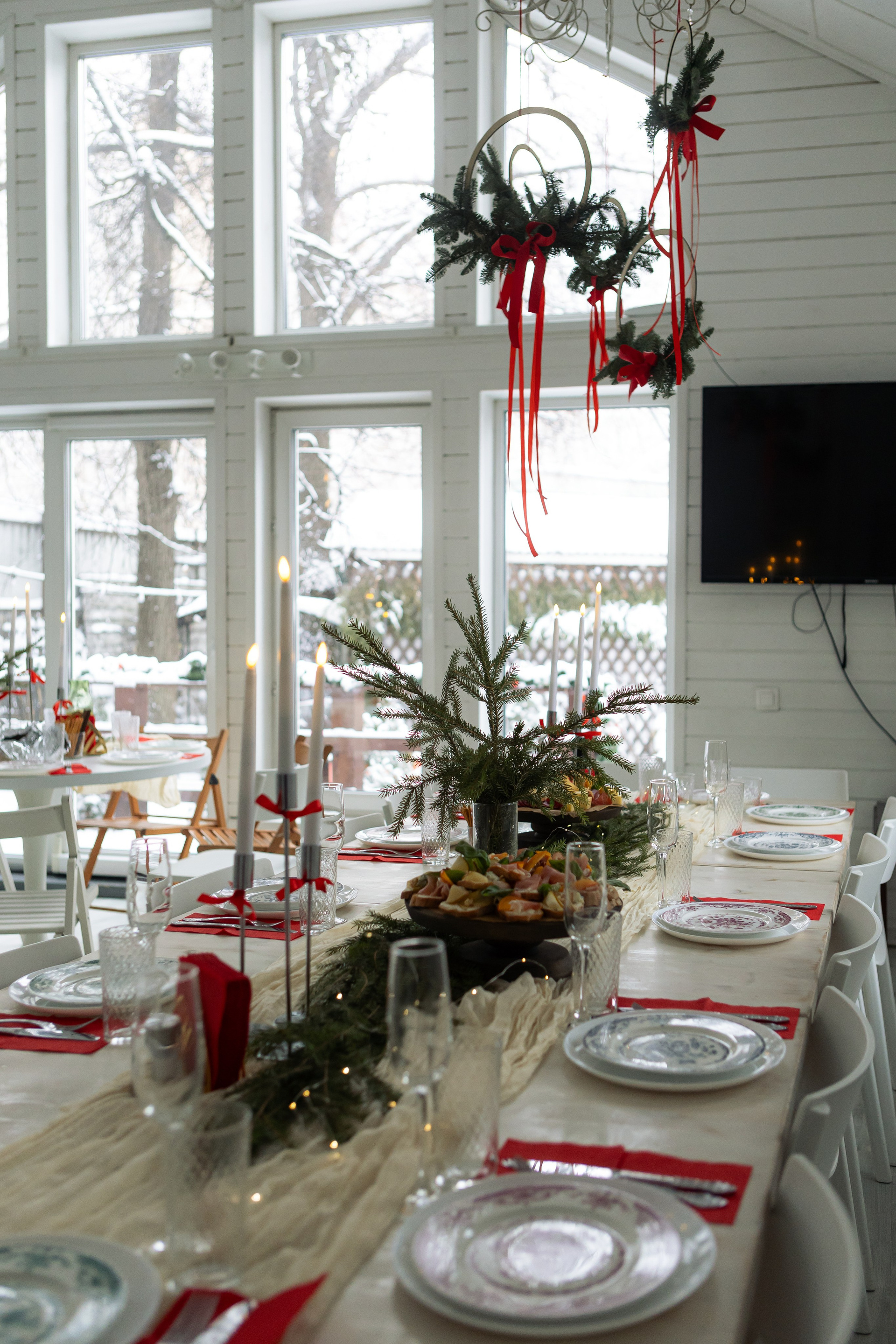Продуманный светлый интерьер в скандинавском стиле поддерживает любую концепцию праздника, а также хорош сам по себе! А вид из огромных окон на внутренний дворик и липы позволяет забыть о городской суете.